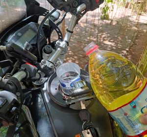 Letzte Möglichkeit für mich ist der Telefonjoker: ich schreibe 'ne WhatsApp an Rudy Weise. Er antwortet mir auch prompt: ich soll es bei Biopetrol versuchen, den Standort schickt er mir. 3 km weiter biege ich in die Tanke ein und .... die verkaufen mir tatsächlich Benzin. Nur rein damit in den Tank, bis er überläuft. Wer weiß schon, wann es neues gibt?