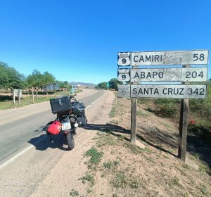 Nach exakt 100 Kilometern erreiche ich den Abzweig in der Kleinstadt Boyuibe. Dort heißt es, den linken Strang zu nehmen und weiterhin auf der Ruta 9 zu bleiben, nicht die 36 zu nehmen. So jedenfalls sagte mir Rudy Weise. Rudy ist einer der Administratoren der WhatsApp-Gruppe "Bolivian Riders", deren Mitglied ich seit drei Jahren bin. Ihn habe ich schon vorige Woche mal kontaktiert wegen der Situation mit dem Verkauf von Benzin an Ausländer. Noch vor einem Jahr war es wegen des Treibstoffmangels praktisch verboten, Sprit an Ausländer zu verkaufen. Deshalb habe ich auch dieses Jahr wieder zwei Ersatzkanister dabei und selbst noch zwei 2-Liter-PET-Flaschen an der Grenze zu Bolivien mit "Gasolina" füllen lassen. Glücklicherweise besteht das Problem nun nicht mehr. Benzin ist wohl wieder genügend da und wird auch mir an einer Tankstelle in Camiri verkauft. Allerdings bezahlen die Einheimischen 3,5 Bolivianos pro Liter (40 Cent), während die Ausländer 8 Bolivianos bezahlen müssen (1 Euro) - immer noch deutlich weniger als zu Hause!