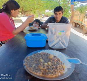 Gegen Mittag erreiche ich den Ort Ipita. Der Hunger lenkt die Yamaha eigenmächtig vom Highway herunter. Und tatsächlich ist mitten im Ort eine kleine "Fressbude". Man verkauft mir Reis mit Linsen und Fleisch. Dazu einen großen Becher Noname-Cola. Schmeckt richtig gut. Mit mir am Tisch sitzt eine bolivianische Familie. Die haben mit ihrem kleinen Viehtransporter auch hier angehalten. Mit dem Mann komme ich schnell ins Gespräch, denn er ist, wie alle hier, sehr an mir und meinem Motorrad interessiert. Lange kann ich mich nicht aufhalten, denn ich habe noch 3 Stunden Fahrt vor mir.