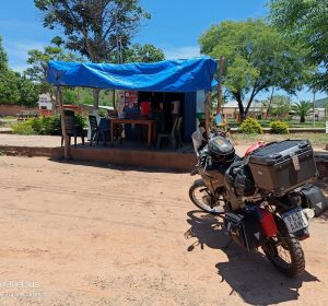 Punkt 7 Uhr lenke ich die XTZ auf den Highway PY09 Richtung Nordwesten nach Mariscal, die letzte Enklave in Paraguay vor der bolivianischen Grenze. Die 80 km bis dahin sind dann auch in einer Stunde abgefahren. Auch hier mache ich noch einen Tankstopp und lasse auch meine beiden Ersatzkanister füllen. Denn die Benzinknappheit in Bolivien besteht wohl immer noch. Weitere 120 km weiter kommt man dann an die letzte Kreuzung in Paraguay. Hier muss man den Abzweig nach links, also nach Westen nehmen. Weiter geradeaus geht es auch nach Bolivien, allerdings auf einem Erdweg. Auch hier nutze ich nochmals die Tankstelle zum Befüllen aus.