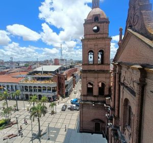 So jedenfalls kann man es aus dem spanischen Internet erfahren. Das mit dem tropischen Flair kann ich durchaus teilen, denn heute ist es mit über 30 Grad schon drückend heiß. An die Tropen erinnern auch die vielen Palmen am Wegesrand und in den Parks. Ansonsten macht die Stadt einen eher ungepflegten Eindruck. Viele der alten Kolonialgebäude der Spanier sind am Verfallen oder erst gar nicht mehr wiederzuerkennen. Die Stadt wurde 1561 vom spanischen Eroberer Ñuflo de Chavez ca. 200 km östlich des heutigen Ortes gegründet.