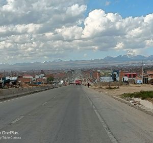 Kurz vor La Paz kann ich nochmals 5 Liter Benzin von Privat kaufen und muss nicht in La Paz nach Benzin suchen. Im Außenbezirk der Hauptstadt wird die Autobahn grade saniert und ist komplett gesperrt. Eine Umleitung ist natürlich nicht angeschrieben. Also fahre ich einfach den anderen Fahrzeugen hinterher über unbefestigte Schotterpisten der Vororte. 5 km weiter ist der Spuk dann vorbei und ich habe wieder festen Asphalt unter den Rädern. Aber leider fängt es zu regnen an. Im Vorort El Alto stelle ich die Karre vor einem Schnellimbiss ab und setze mich ins Trockene. Das gibt mir die Zeit, nach einem Hotel zu suchen.